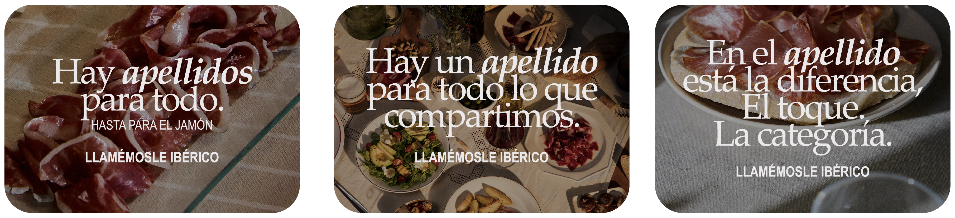 Así que, partiendo del posicionamiento “Somos Muy Ibéricos” de la marca, lanzamos “Llamémosle Ibérico”, una campaña transmedia con un concepto que, aunque de primeras nos podría parecer clasista y, hasta cierto punto, controvertido, no por ello es menos verdad: en este país el apellido importa. Y mucho.